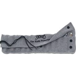 - Silicone treated gray cotton knive roll holds knives which measure up to 5″ closed