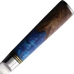 - Curly birch and blue resin handle