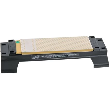 Model – DMTWM8EFWB. Duo Sharp Plus Extra Fine And Fine Grit Diamond Bench Stone. Extra Fine/Fine Grit. 8 inch x 2.63 inch double sided, two-grit, diamond bench stone with a continuous zone for small and pointed tools. Comes with Duo Base, a black molded base that provides 2 inch knuckle clearance for ease of use. Rubber feet secure the base and stone to your workbench. Proudly made in the USA.