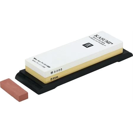 Model – FOXK80002. Sharpening Stone 3000/8000. Dimensions: 8.75 inch x 3 inch x 1.5 inch. 3000 and 8000 grits. Stone dimensions: 7.75 inch x 2.38 inch x 1 inch. Rubber base. Includes small stone that is used to make the surface of the whetstone flat. Boxed. Made in Japan