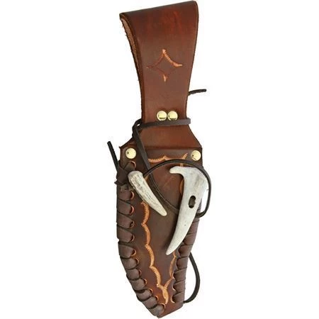 Model – KRK1408T. 5in Bowie. 10 inch overall. 5 inch 1085HC steel clip point blade. Shed deer or elk antler handle with turquoise inlay. Brass guard. Measurements may vary slightly due to variances in natural handle materials. Brown leather belt sheath. Bulk packed.