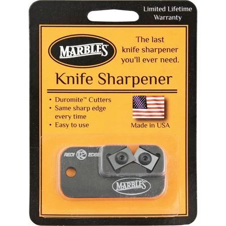 Model – MR81009. Marbles 81009 – Redi-Edge Dog Tag Knife Sharpener with Black Anodized Aluminum Body. Measures approximately 2″ x 1″ x 1/8″. Hardened ceramic honing surface is chemically bonded to black anodized aluminum body. Features Duromite cutter sharpening inserts. Convenient and compact. Easy to use. Rust resistant. Hang packaged. Proudly made in the USA.