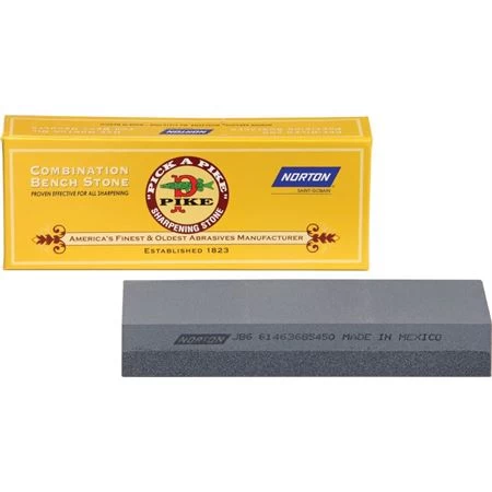 Model – NTJB6. Pike Crystolon 6 inch. Dimensions: 1 inch x 2 inch x 6 inch. Grit: Fine Coarse. A premium benchstone of industrial quality, precision lapped and pre-oiled.