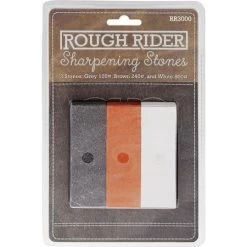 - Three piece set contains gray (120 grit), brown (240 grit), and white (800 grit)