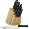 - Blade: High Carbon Stainless l Satin Finish; Handle: Black l Synthetic; Other Info: Includes 15.25″ overall slicer with 10″ Granton blade (Made in Portugal); 13.25″ overall breaking with 8″ blade; 13.5″ Chef’s with 8″ blade; 11″ overall boning with 6″ blade; 7.25″ overall paring with 3.25″ spear point blade; 14″ overall sharpener with 9″ steel regular cut rod