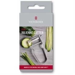 Model – VN60914. Star Peeler Julienne Silver. 4.25 inch (10.8cm) overall. Julienne blades. Stainless construction. Boxed with hanging tab. Made in Switzerland.